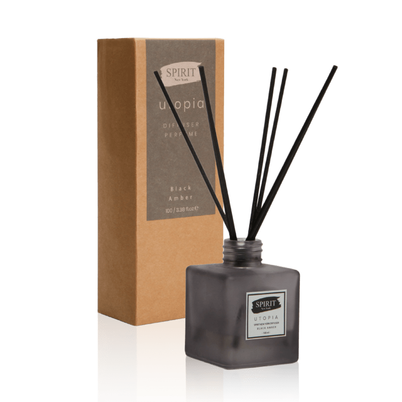Fragrance diffuser in a black glass bottle in a luxurious design
